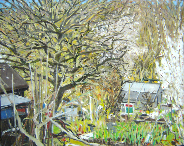 Allotment, Spring Morning (Oil) 16" x 20" £950