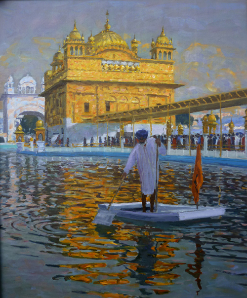 Cleaning the Lake, Golden Temple, Amritsar (Oil) 24" x 20"
