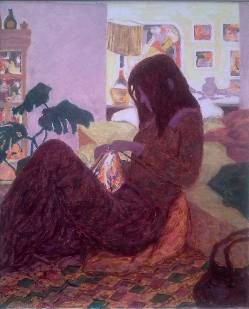 Helen Crocheting by Lamplight (Oi) 18" x 23"