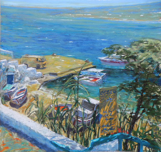 Harbour, Ikaria, (Pastel) 16.5" x 17"