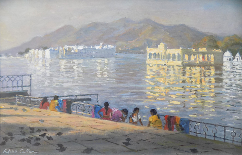 Women Washing, Lal Ghat, Udaipur (oil on canvas) 12.5" x 18.5"