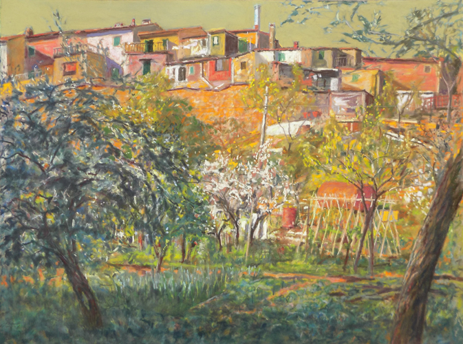 Backs of the Houses from the Vegetable Gardens, Marcialla, Tuscany (Pastel) 23" x 31"