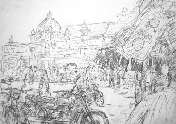 57b Market Square Palitana (Pencil) 8.5" x 11" £400 (framed with 57a)