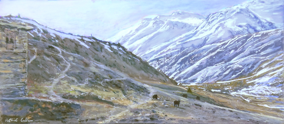 Mountain Cattle near Braka, Nepal (pastel) 10" x 23" £950