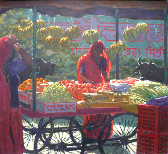 Woman at a Fruit Stall (Oil) 24" x 28"
