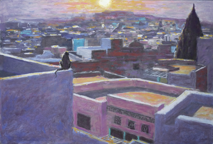 34. Roofs with Monkey, Sunrise, Bundi (Pastel) 11" x 15" £1100