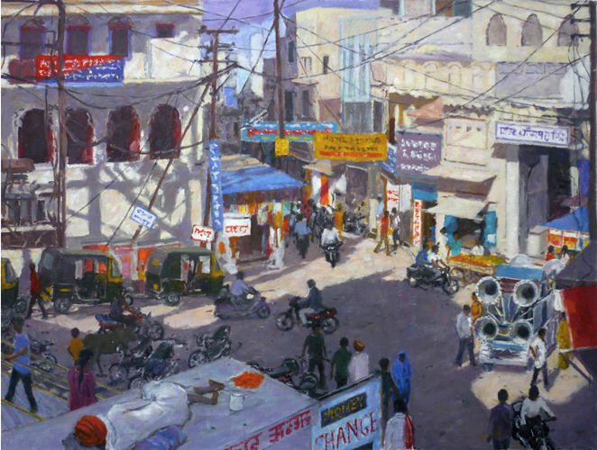 9. Sadhu Asleep, Jagdish Chowk, Udaipur (Oil) 17.5" x 23" £1700
