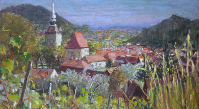 22. Saschiz from a Vineyard (Pastel) 12" x 22"