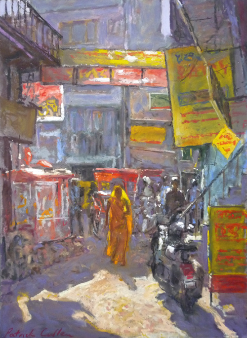 44. Side Street, Paharganj (pastel) 10" x 13"