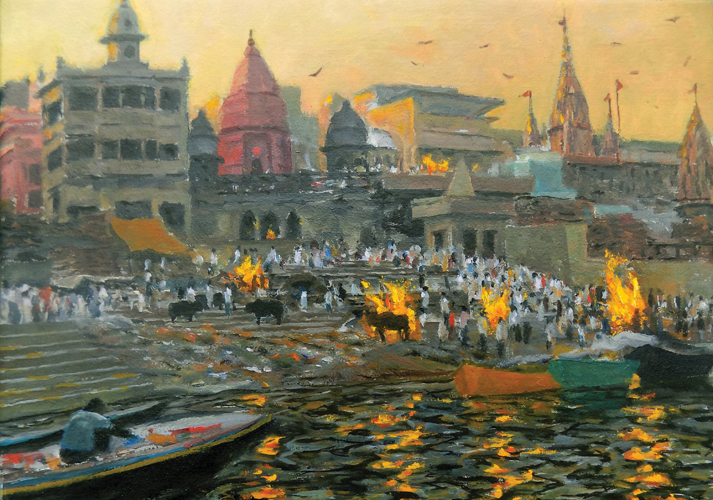 The Burning Ghat at Dusk (Oil) 10" x 14" £790